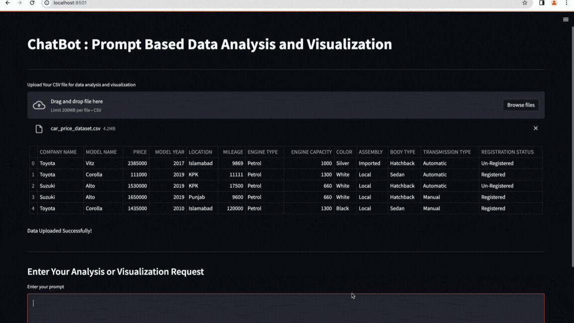 Prompt Based Data Analysis and Visualization Chatbot APP