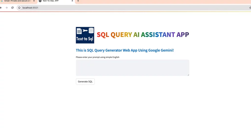 In this project, a Text-to-SQL chatbot powered by Google Gemini is developed. The chatbot allows users to input plain text queries and generate corresponding SQL query code, along with an example of the output and an explanation of the generated code.